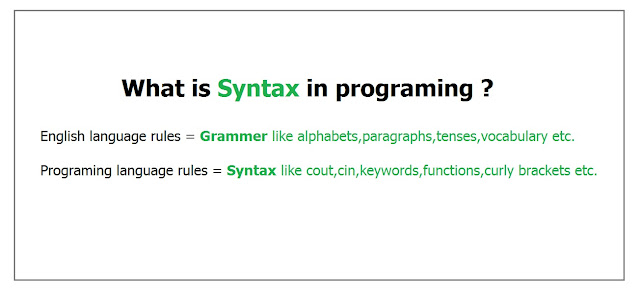 Syntax in a programming language are a rules or components of any programming language from which any programming language is made of. In the image below the concept of syntax is briefly defined.